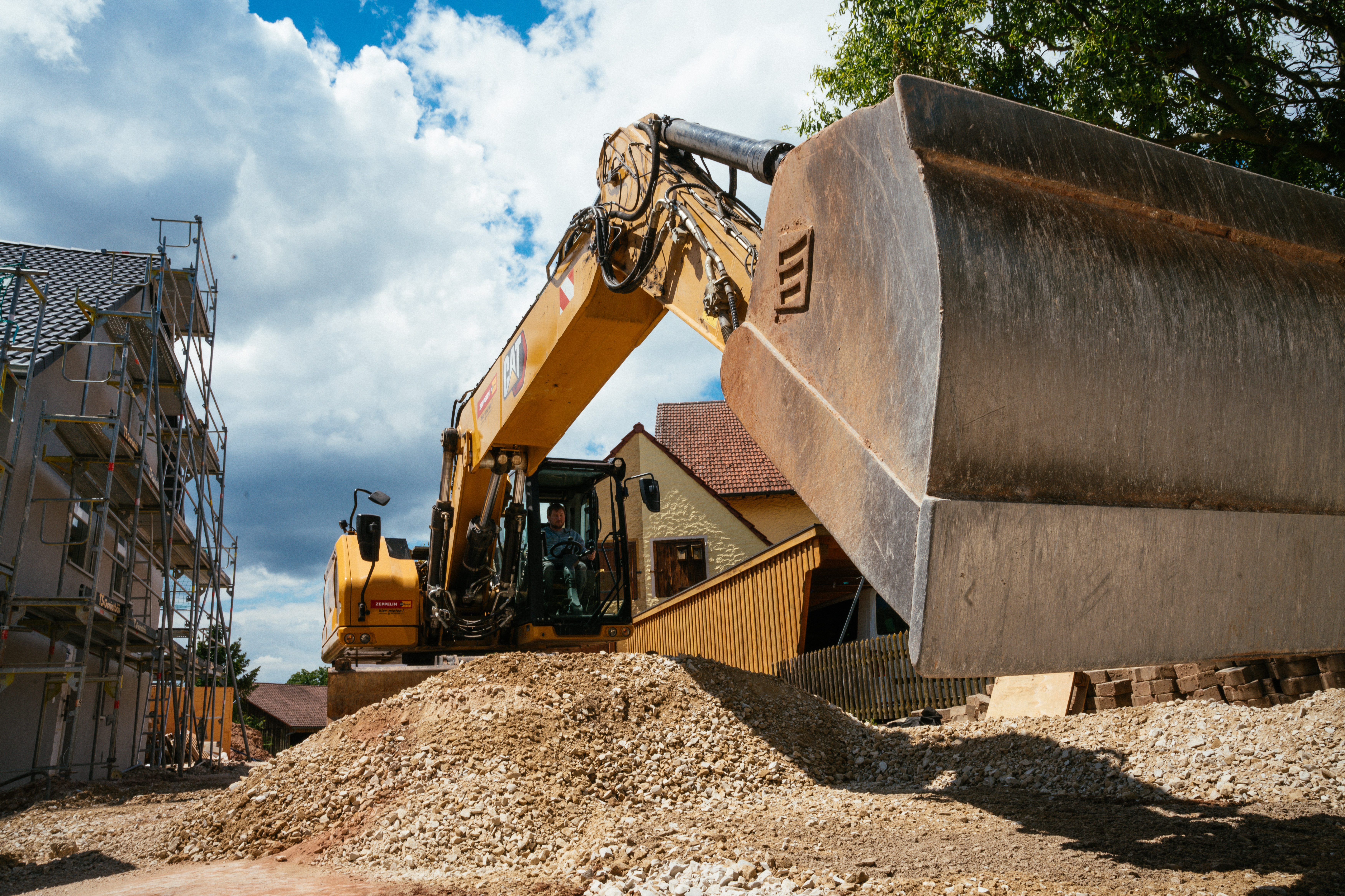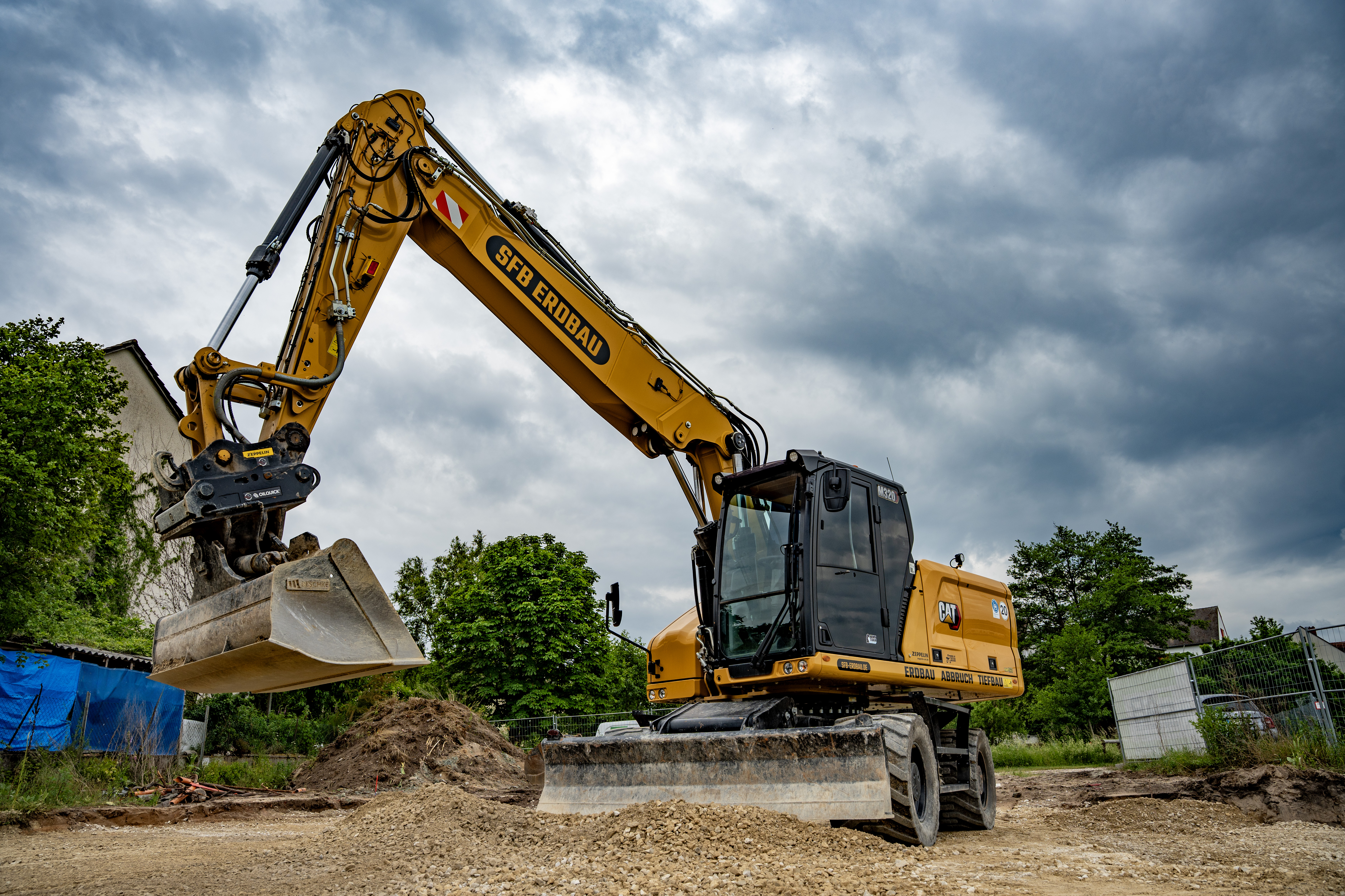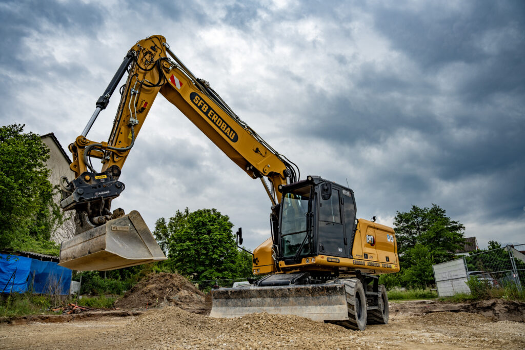Wir betreuen Bauprojekte für Bauträger, Bauunternehmen, Kommunen und private Bauherren. Um Einsatz kommen unsere modernen Bagger von CAT mit 2D-Steuerung für zentimetergenauen Aushub, darunter M320 (Rad), 326 (Kette), 330 (Kette).